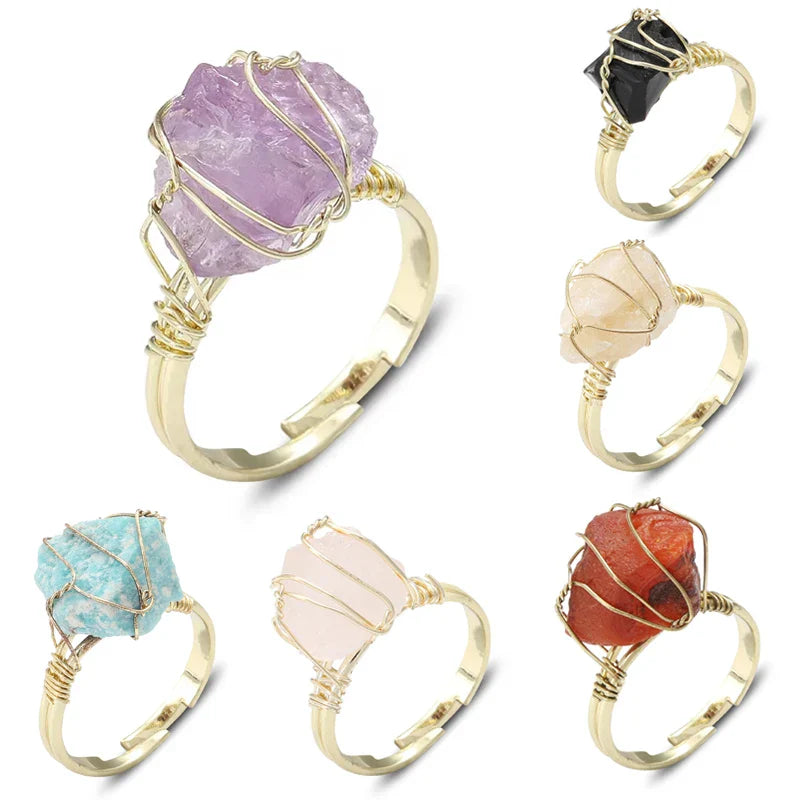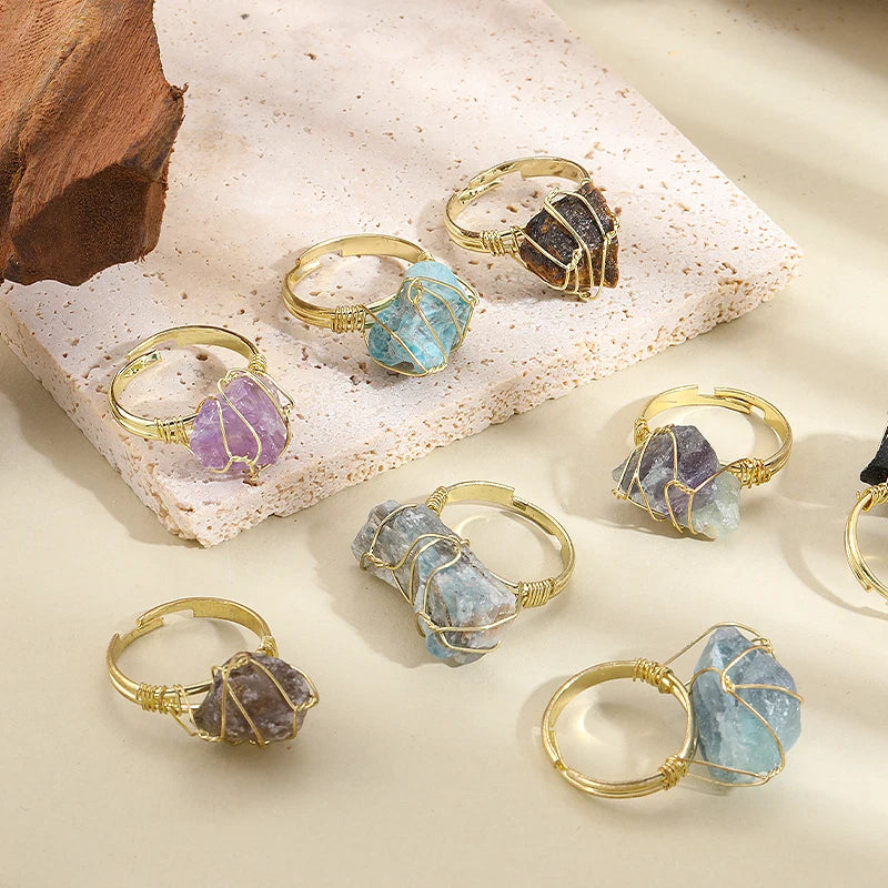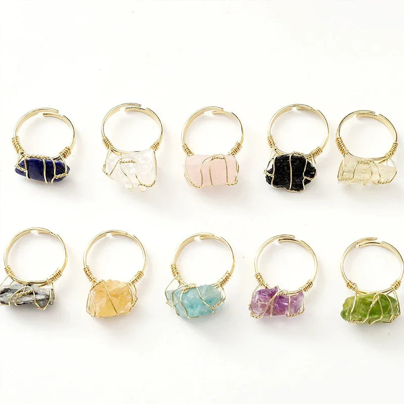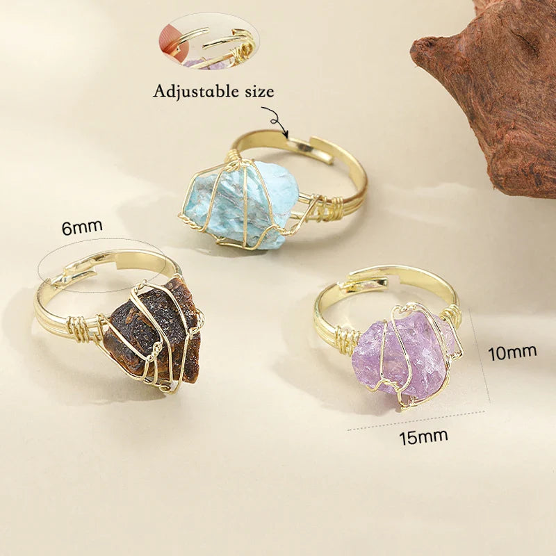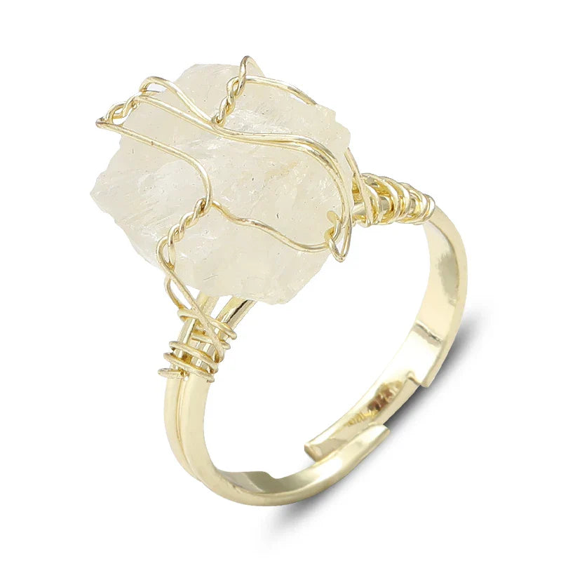 Wire Wrapped Raw Crystal Gold Rings
