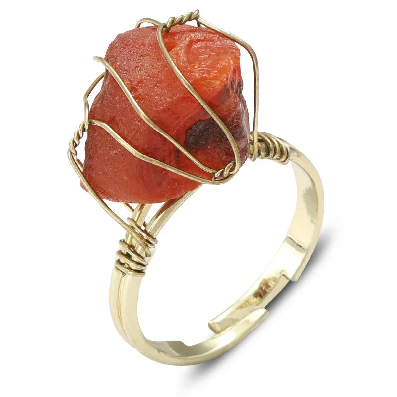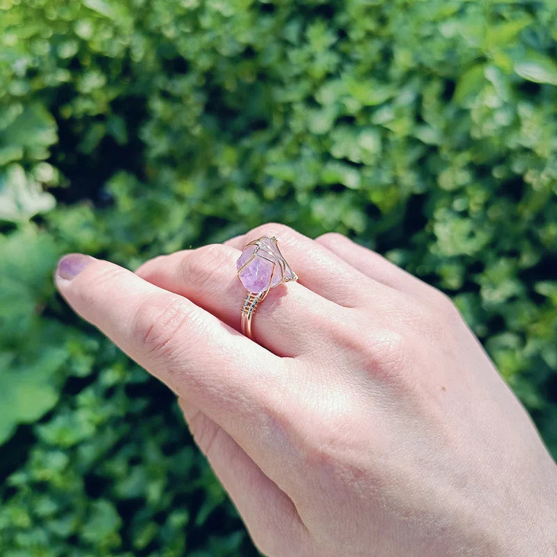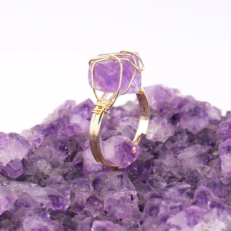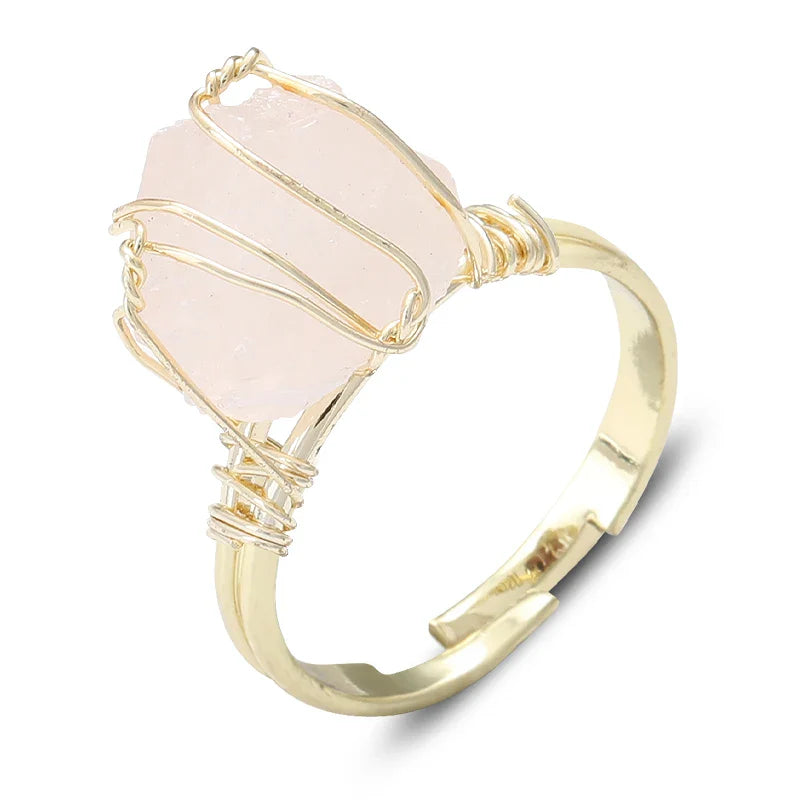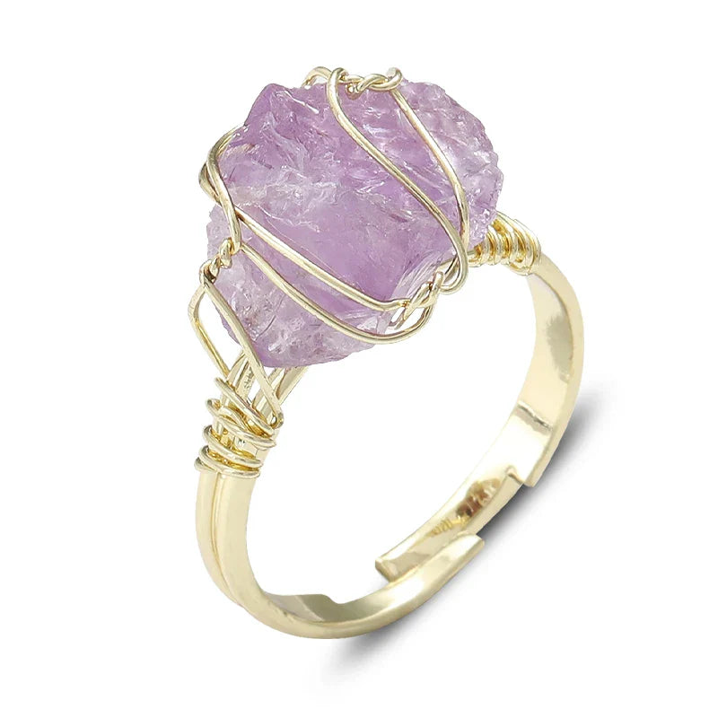 Wire Wrapped Raw Crystal Gold Rings