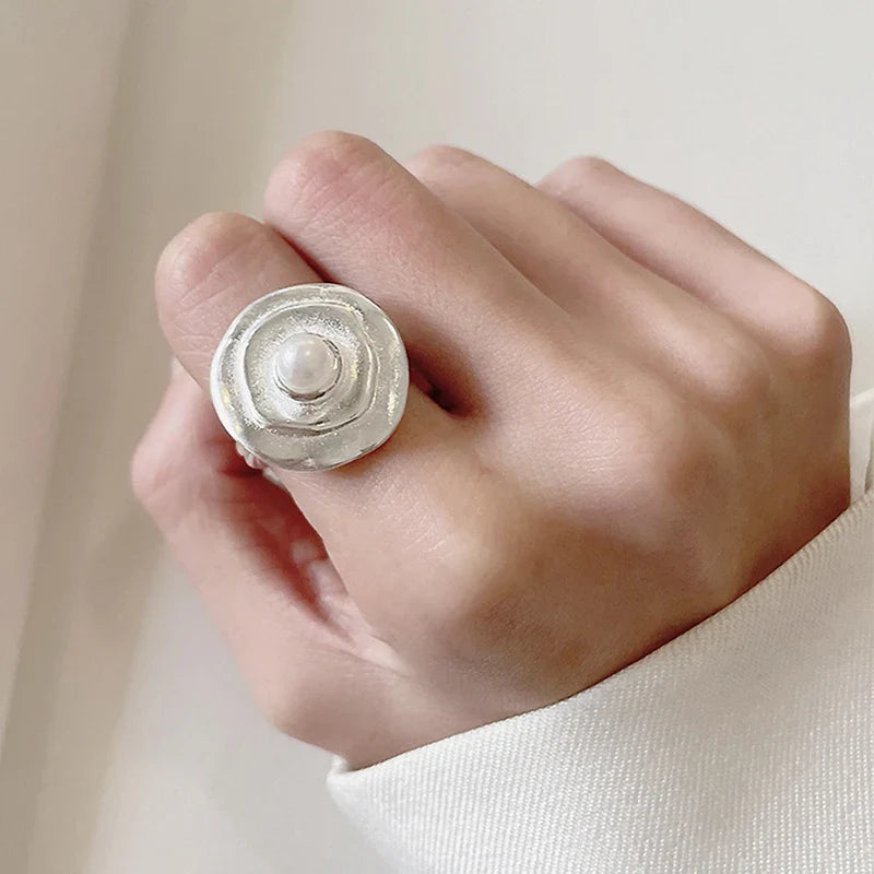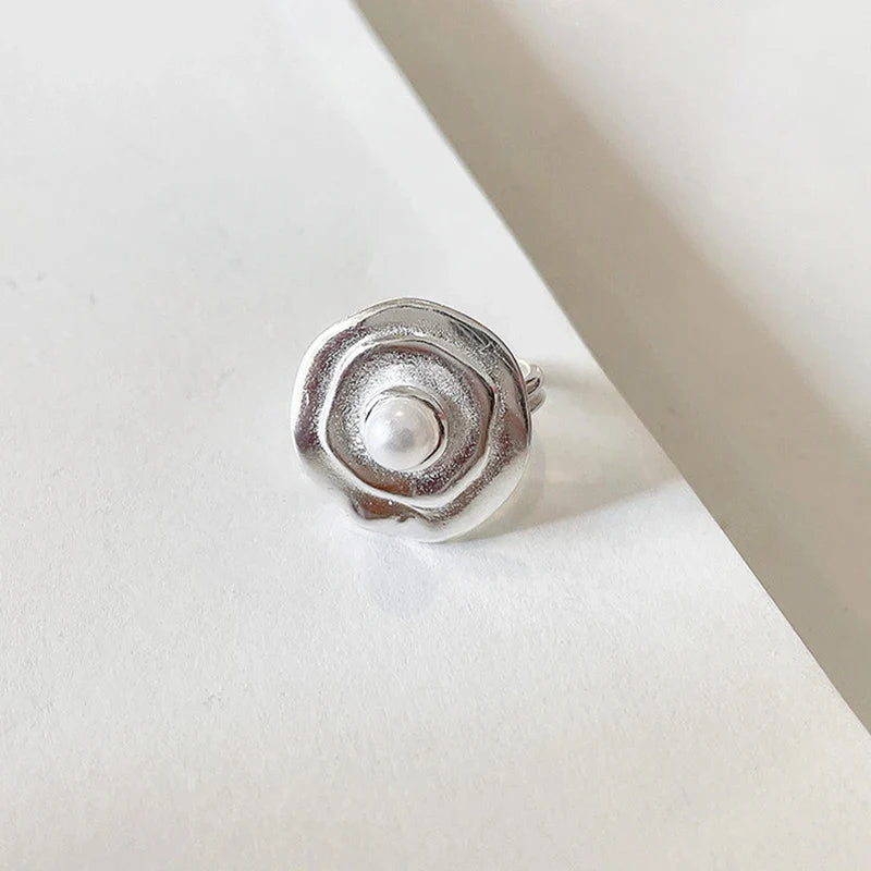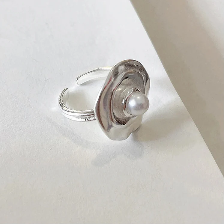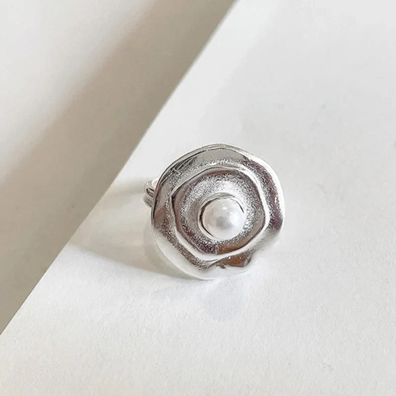 Silver Orbit Pearl Adjustable Ring